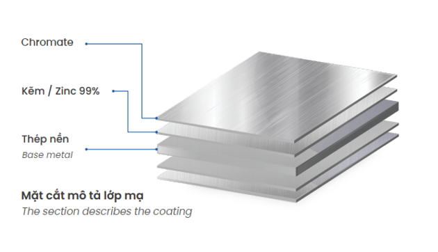 Galvanized steel: Galvanized steel is steel in coil form coated with two layers of pure zinc (99%) on the surface, using continuous hot-dip galvanizing technology, through NOF furnace temperature to control mechanical properties suitable for various applications.